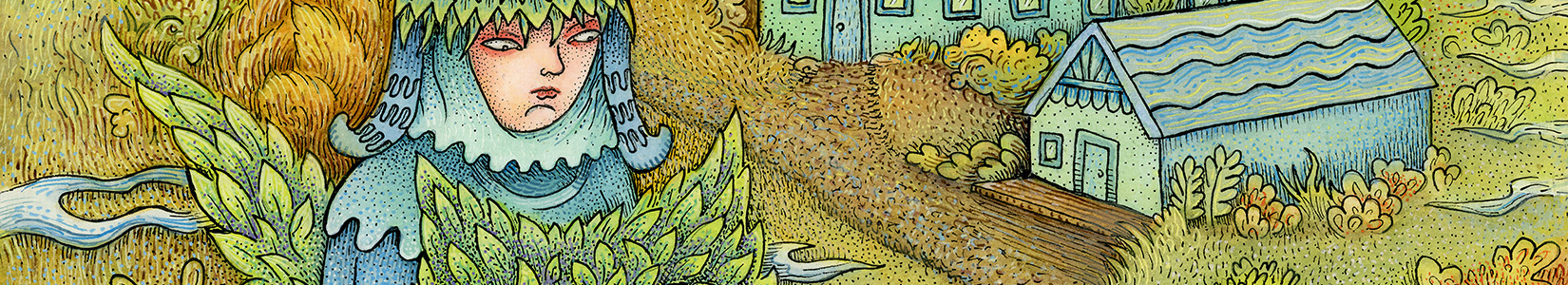 It’s a watercolor and gouache on mounted rice paper and is 11″ X 14″. I did the first layers much like a traditional Gongbi (Chinese meticulous style) painting, and did further detail layers with pen & ink and gouache.